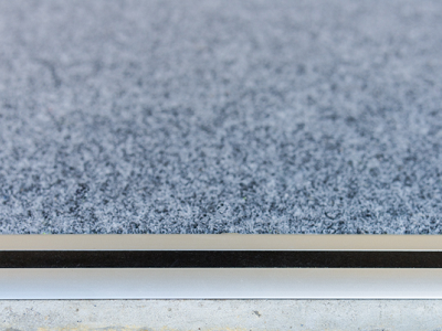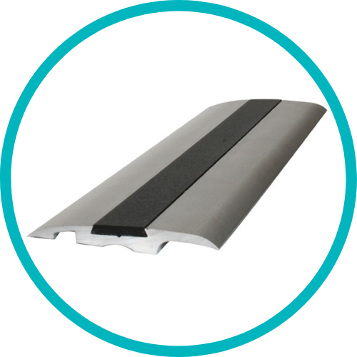 Screwed down into the concrete, the aluminium overlaps the carpet edge, giving added protection and a touch of class. The screws are conveniently hidden under the neat black strip that runs down the centre. Also, it is included in our five year warranty.