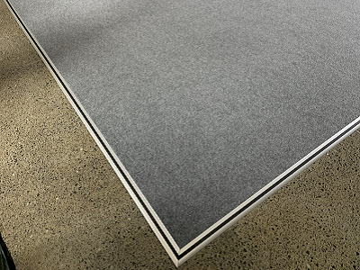 A neat black PVC bevel edging is included in our standard price. Glued to the concrete along the front edge, it abuts to the carpet providing protection and tidy finish.